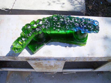 I woke up at seven o’clock. After a nice hot shower I cleaned up the kitchen. I looked for tea, which I could not find. I walked down the street to try to get some tea from Lennart. He was up but after waiting for 10 minutes outside his unit I decided that he was not coming out and went back to my unit to do this diary and checked my office e-mails. Li Gang was supposed to come over at 8:30 so we could have some breakfast together and we could go to Jenny Lu’s for groceries. He showed up at about 10:00 and made arrangements for local taxi to take me to and from Jenny Lu’s for 15 RMB. I was able to stock up on groceries but the driver complained that I took too long and wanted another 20 RMB. It was not worth a fight and I wanted to focus on cleaning up the glass casts that were done for me by the students at Tsing Hua University last year, which Li Gang had delivered to me that morning. They came out different than I expected.