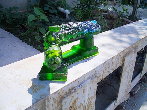 An American gallery owner is interested in purchasing some interesting sculpture from my neighbor Ye DongSheng. I gave DongSheng her e-mail address so that he could send her pictures of the “Chinese red soda bottle rocket”. He took a picture of the sculpture and is coming over tonight after dinner to have me review it before it is transmitted to the art dealer. I said that I would be up to go over the images and what to transmit. Basically, this is a fiberglass sculpture of a soda bottle with rocket booster fins. I think it is quite clever. DongSheng has also done a take off on the Duchamp’ bicycle. He has mounted a bicycle rim, which is badly twisted, on top of a decorative Chinese stool.
